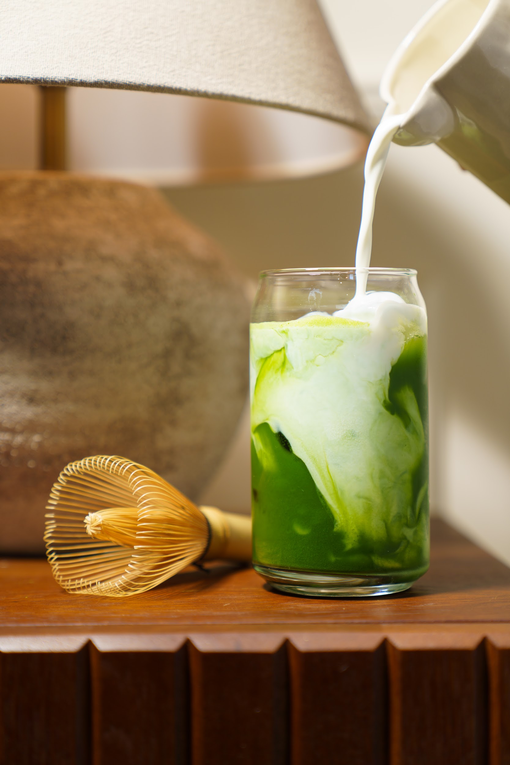 5. Daugă cheață pentru iced matcha latte sau savurează fără gheață pentru versiunea caldă.
